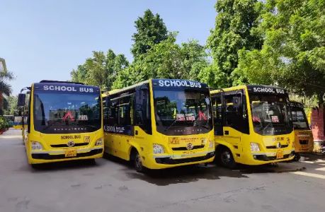 The transportation system is managed with attention to safety and regular monitoring to ensure reliable service throughout the academic year. Well-maintained vehicles and scheduled routes help students travel comfortably while maintaining punctuality for daily academic activities.